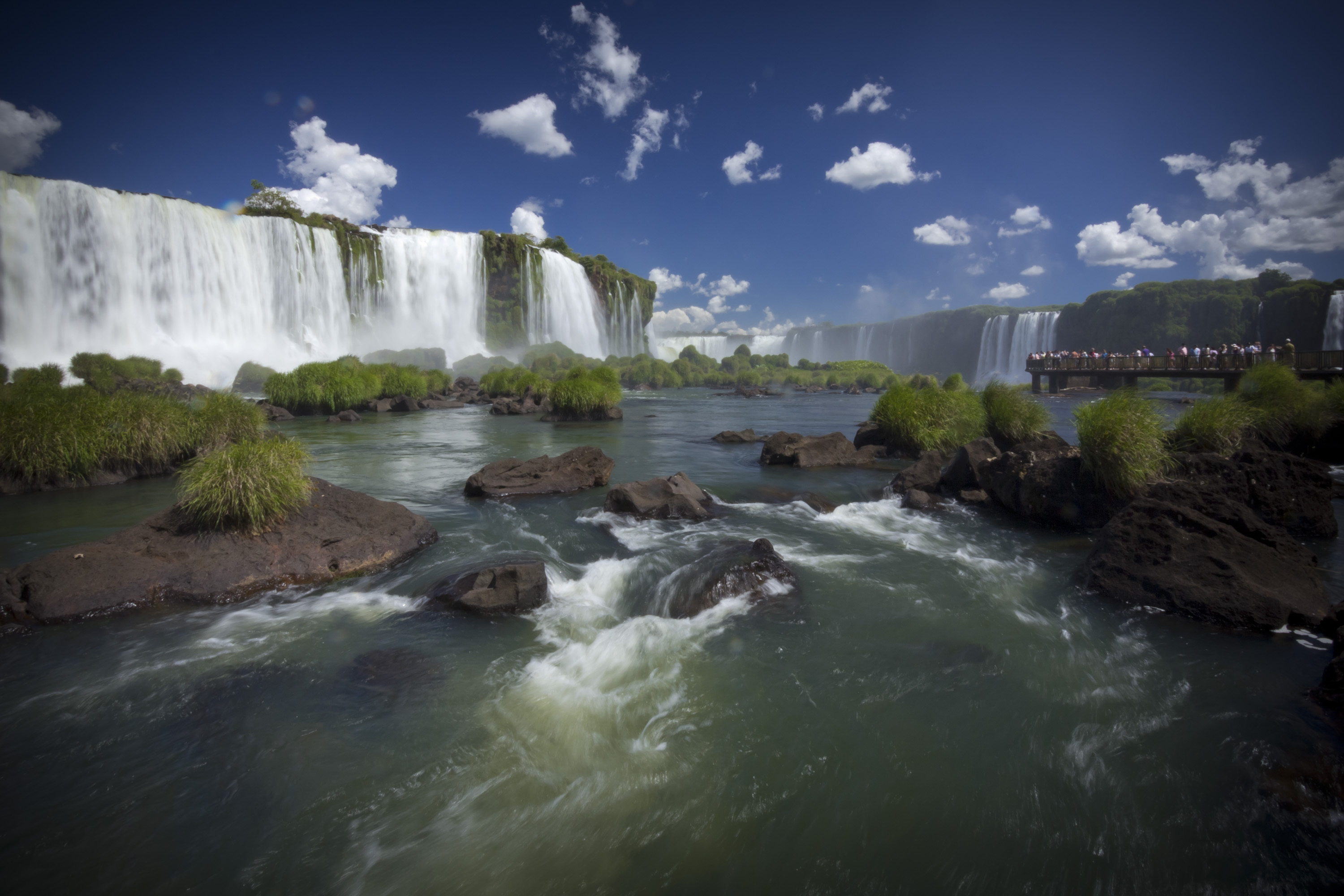 Både den brasilianske og den argentinske side skal opleves. Argentina lægger land til de fleste vandfald, som danner en naturlig grænse til Brasilien gennem Garganta del Diablo, Djævlens gab. Den brasilianske side er roligere, men udsigten er på ingen måde mindre dramatisk.