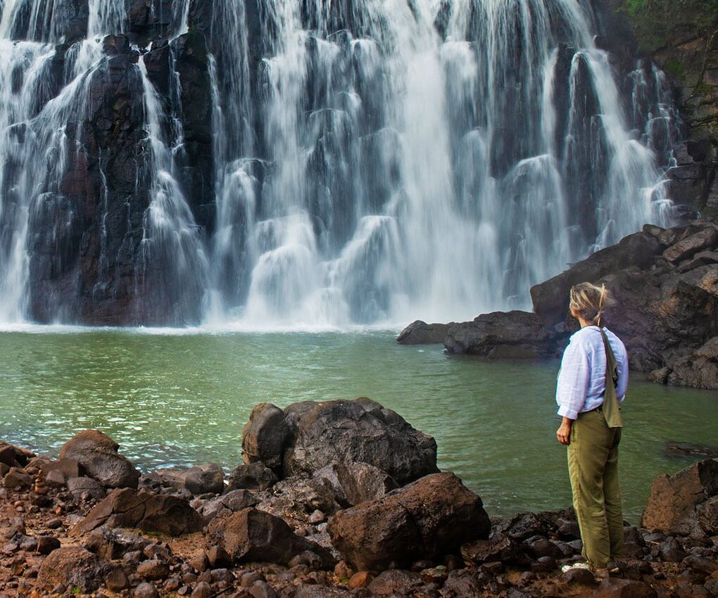 I ser vandfaldene på afstand fra en gangbro, der snor sig langs og over floden, og det giver et imponerende panoramisk view - ofte med regnbuer som et smukt bagtæppe. Omgivet af tæt tropisk regnskov, er området hjemsted for mere end 400 forskellige arter fugle og mange farverige sommerfugle.